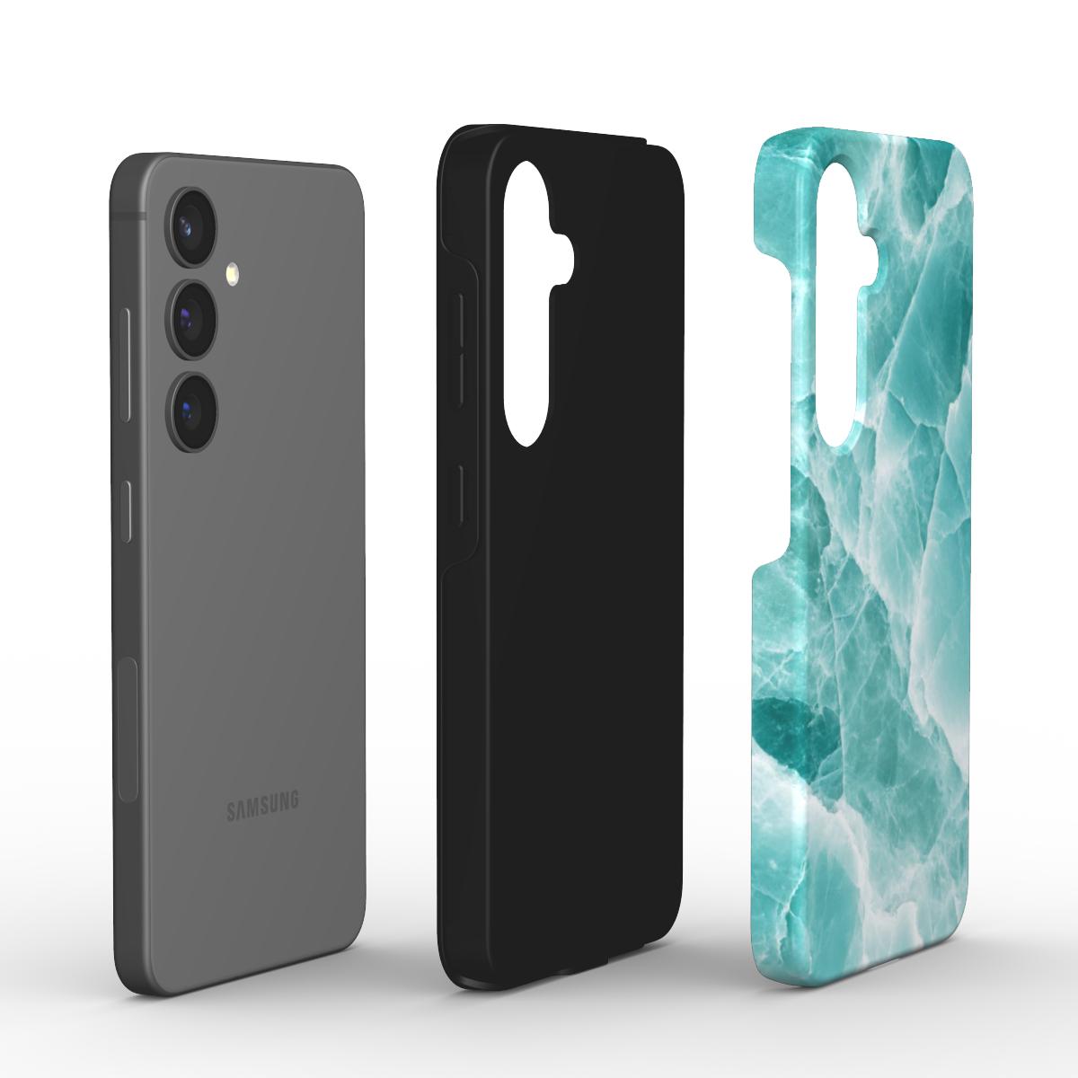 Diese elegante Handyhülle kombiniert stilvolles türkisfarbenes Marmor-Design mit robuster Dual-Layer-Technologie für maximalen Schutz. Die Kombination aus harter PC-Außenschale und stoßdämpfender TPU-Innenschicht schützt dein Smartphone zuverlässig vor Stößen, Kratzern und Stürzen – ohne klobig zu wirken. Die erhöhten Ränder bieten zusätzlichen Displayschutz.